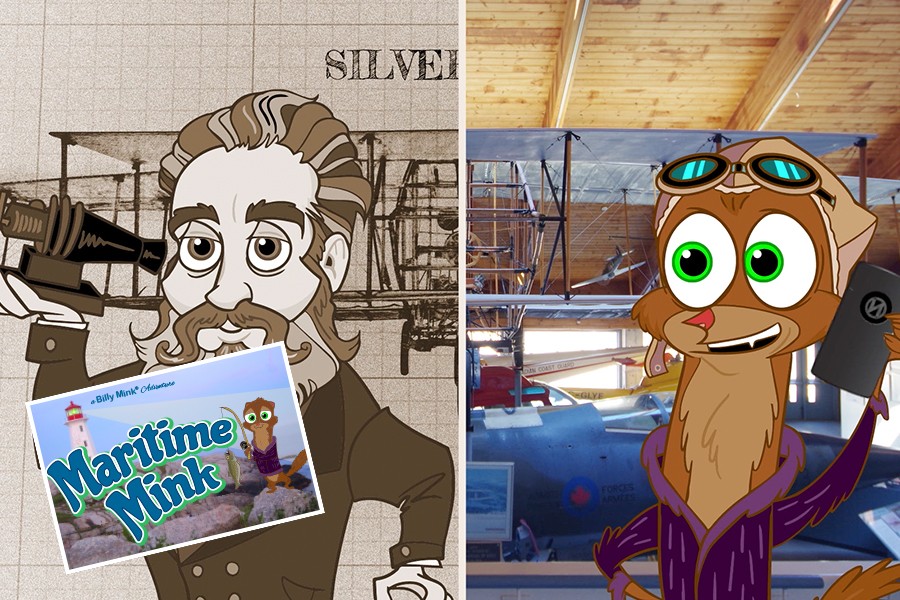 This next adventure in Billy Mink's "Maritime Mink" web series finds him in the cockpit of CF-104 Starfighter airplane, at the Atlantic Canada Aviation Museum in Halifax. He hops around all the amazing aircraft, exploring the history of flight, and Atlantic Canada's aviation heritage. With the help of Dr. N and Fulgur, Billy learns about the physics of flight, and what makes an aircraft actually fly. Bobby Racoon throws a paper airplane at him, escaping with another branch of the Secret Wreath. Nemo orders Billy to pursue him in the Silver Dart, and the adventure continues.